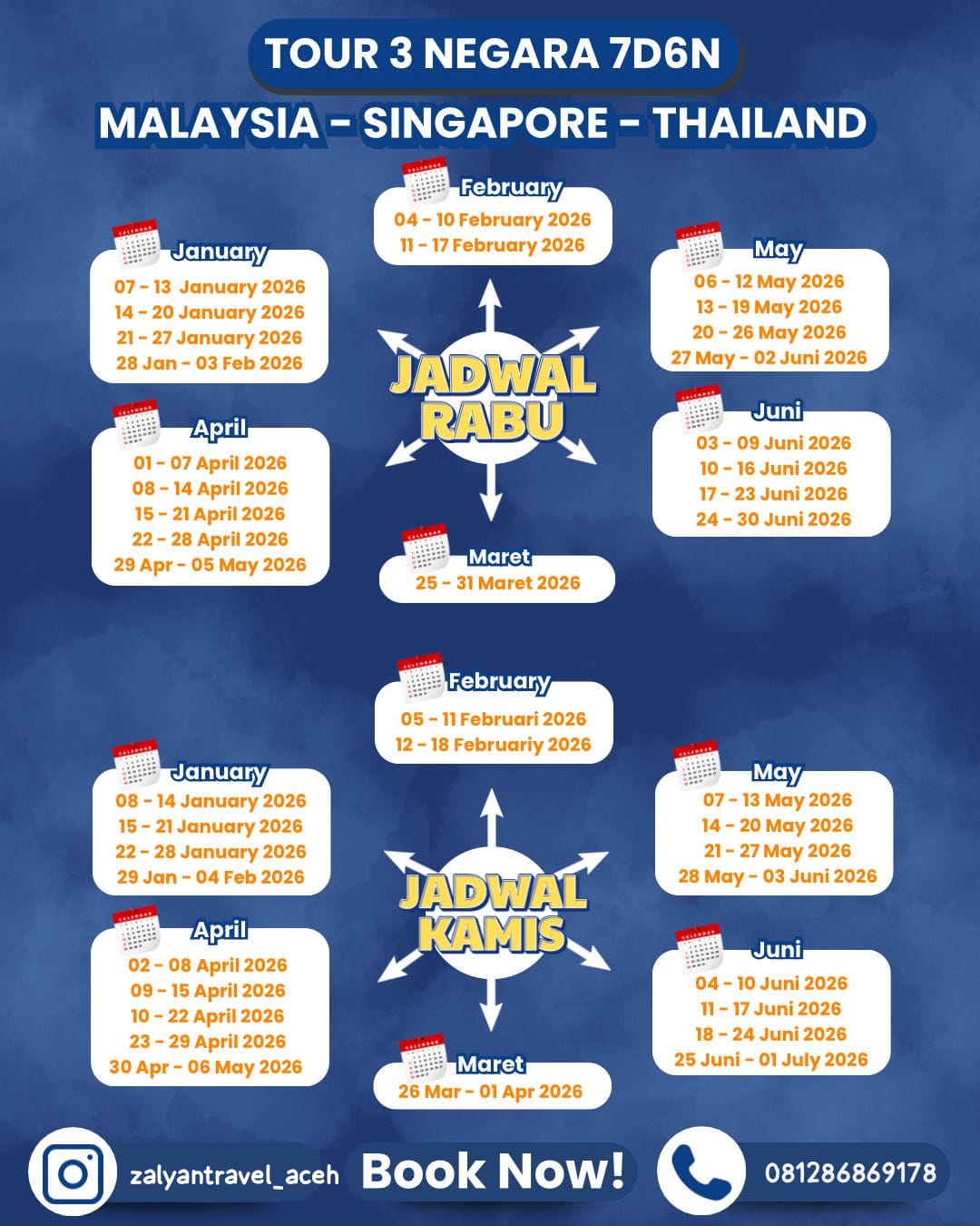 Periode tour : setiap hari RABU & KAMIS di tahun 2026